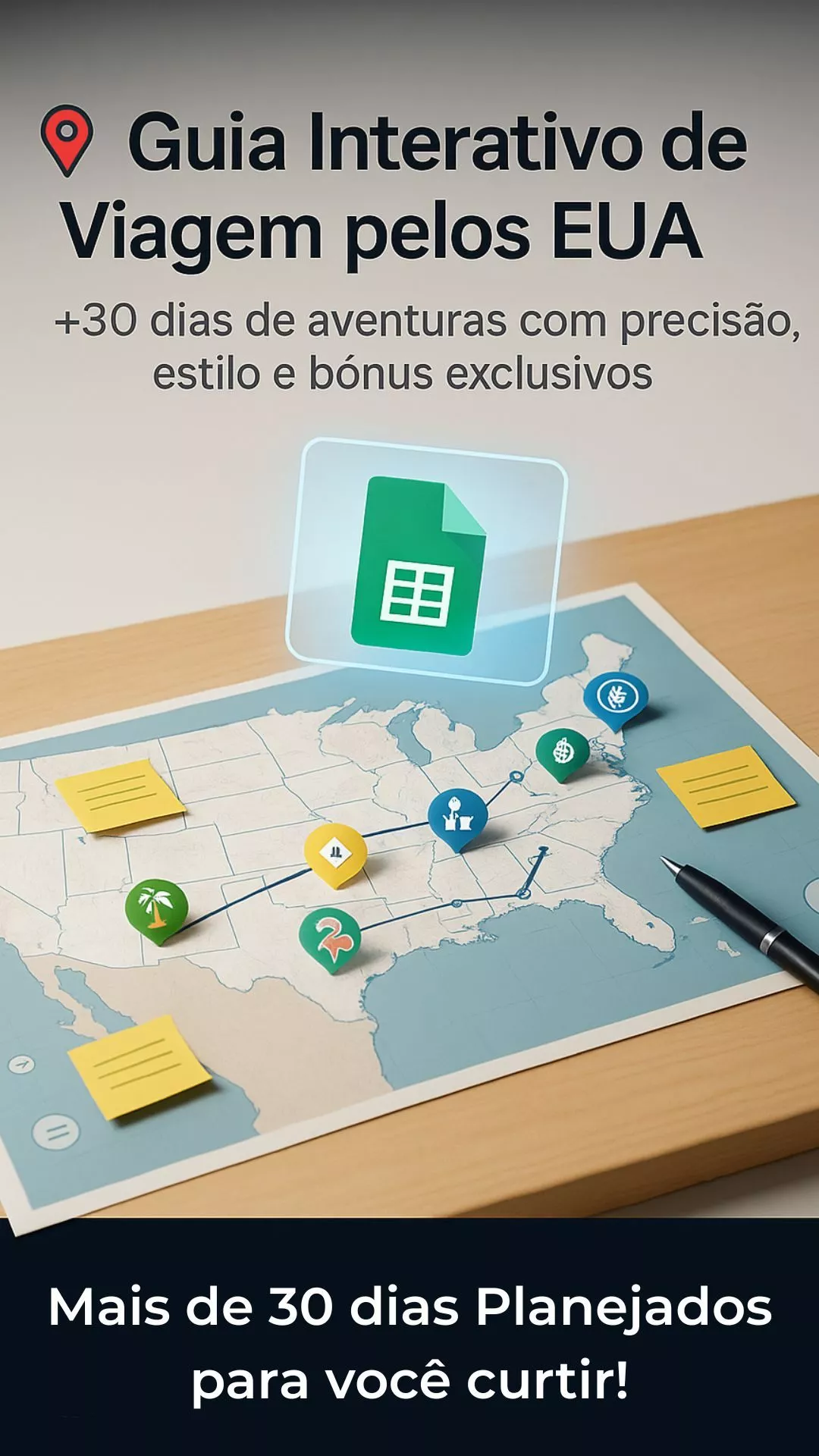 eBook + 4 planílhas brinde + guia de viagem EUA