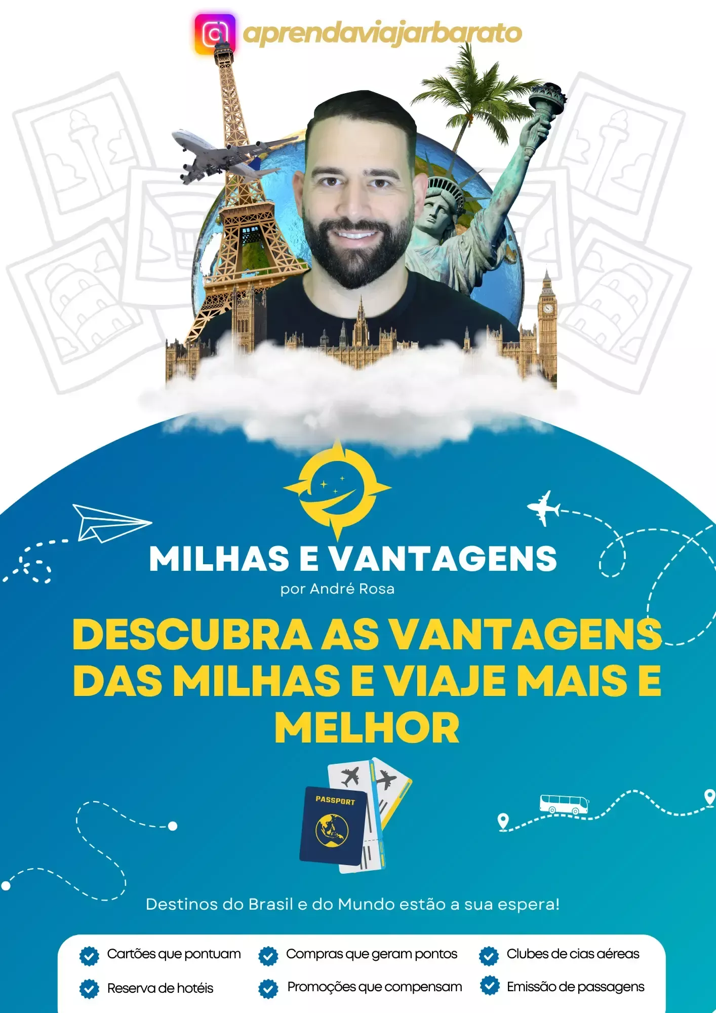 PRAZER, EU SOU O ANDRÉ ROSA, SOU ESPECIALISTA EM VIAGENS E VANTAGENS COM MILHAS, VIAJO A MAIS DE 10 ANOS GASTANDO POUCO E QUERO AJUDAR VOCÊ A TIRAR O PROJETO DE MILHAS DO PAPEL!